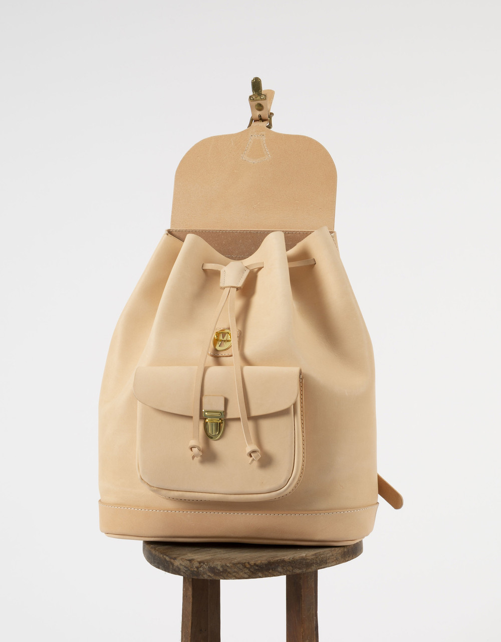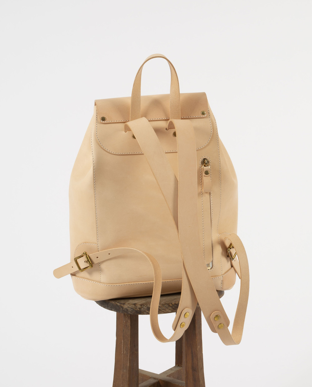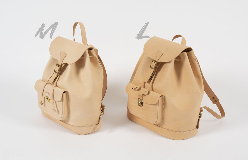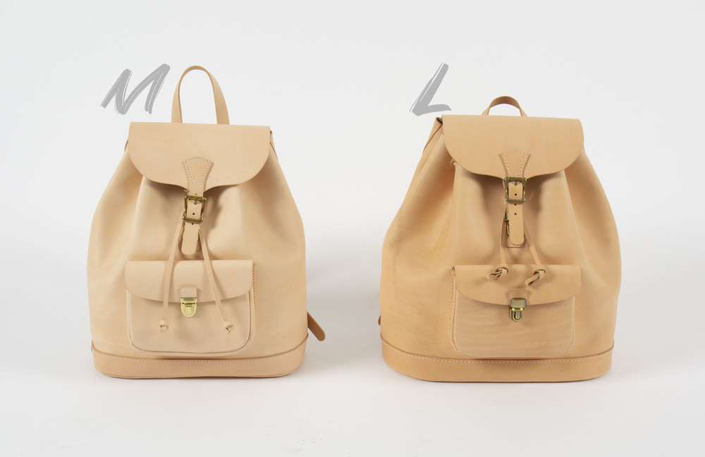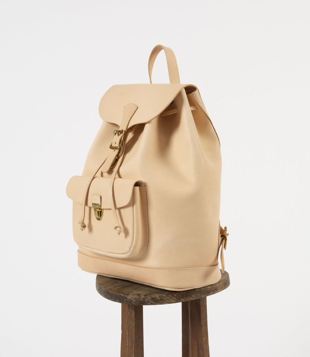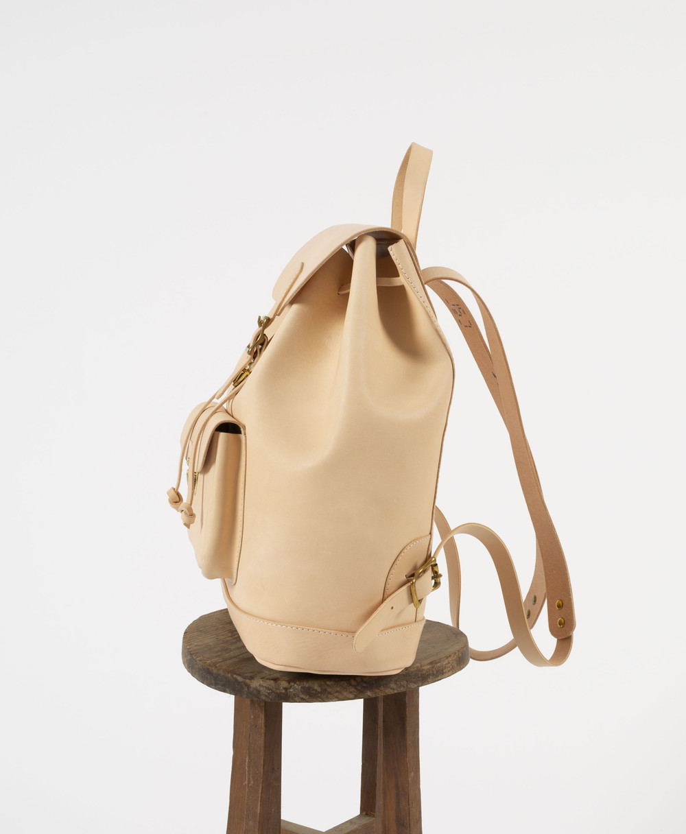 vegetable tanned leather로 제작한 가장 기본 형태의 백팩.